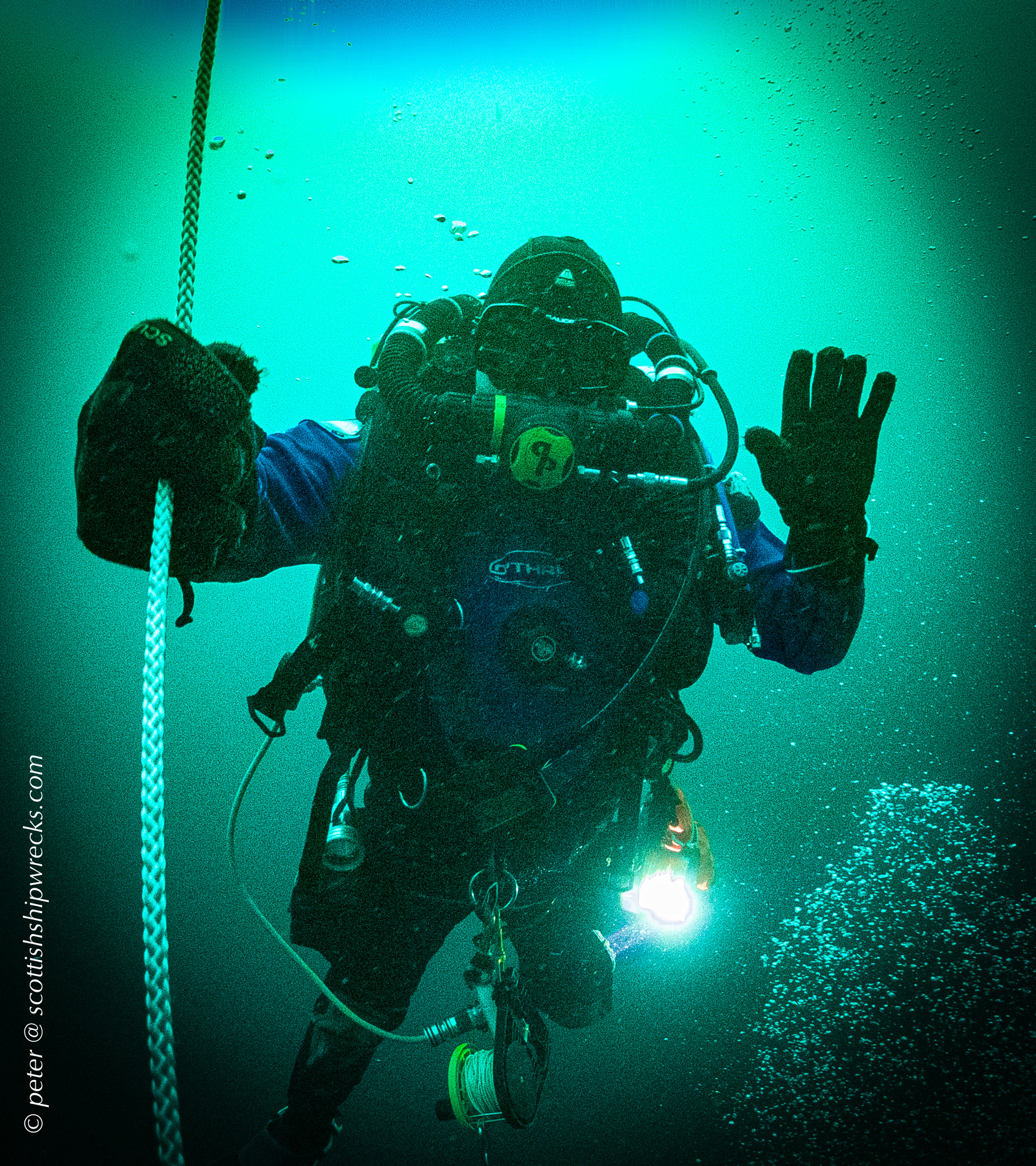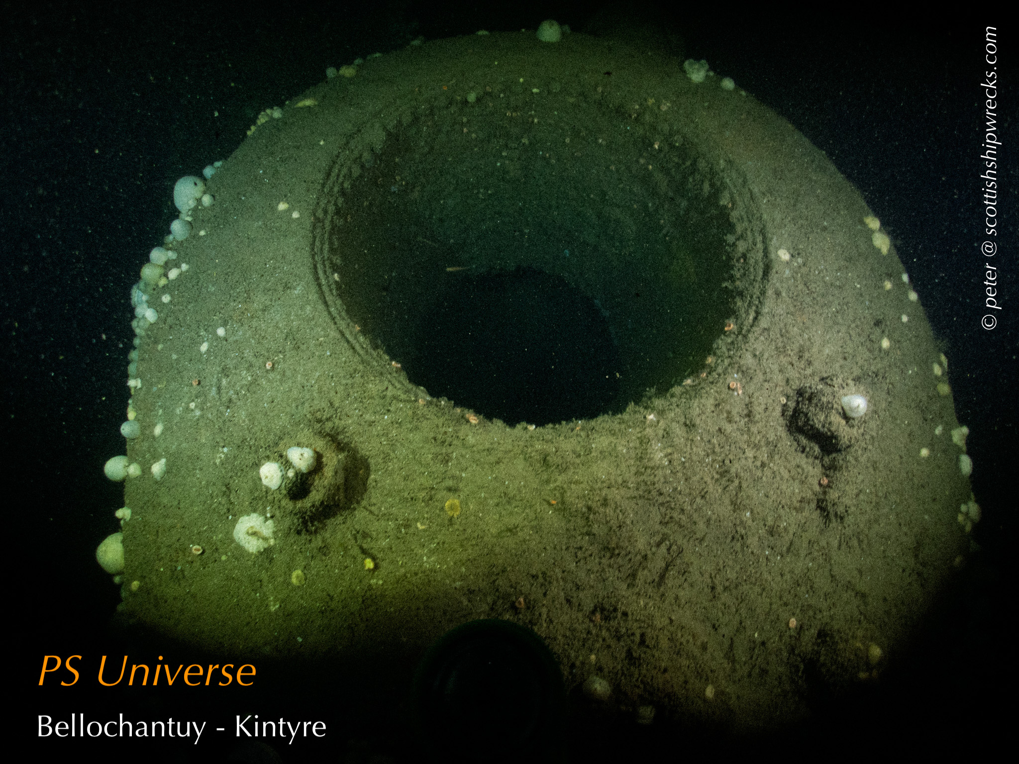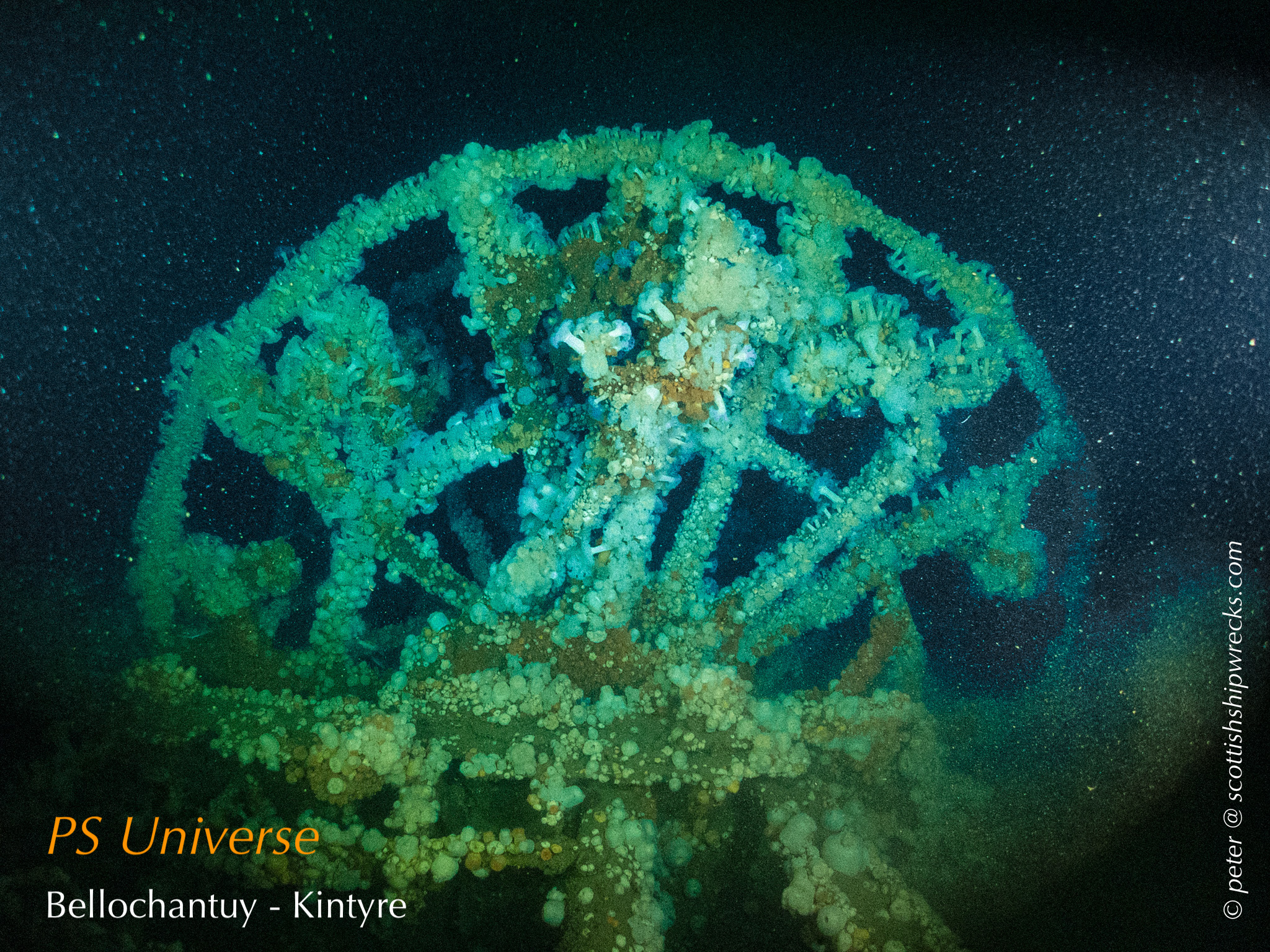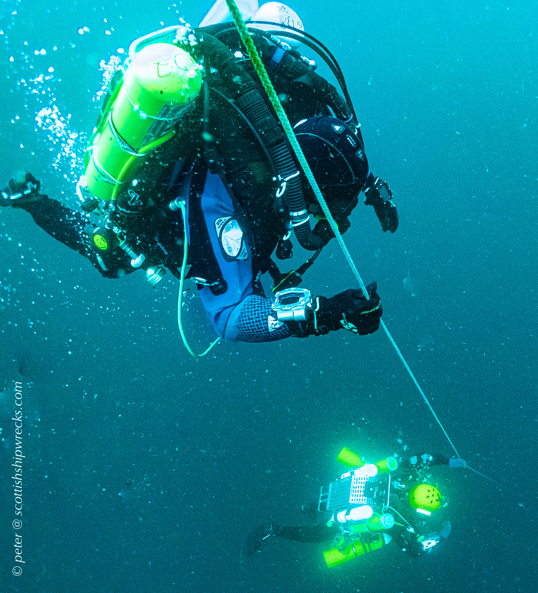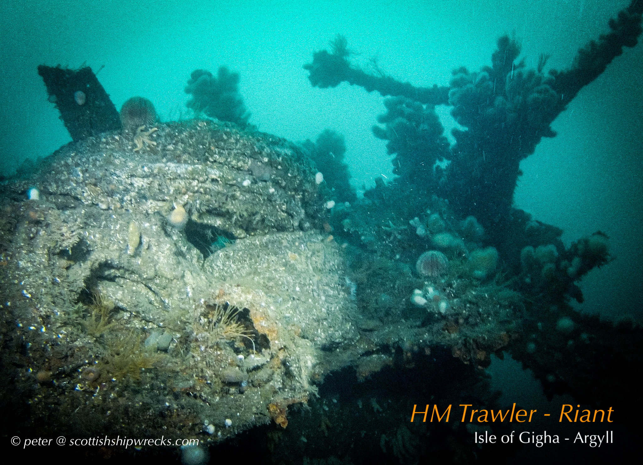 This section contain photographs of the wrecks as they lie on the seabed. These photographs have been taken over a period of many years up to and including very recently.  As such, the older photographs will not necessarily provide a view of the wreck as it exists today. However, the deterioration of the wrecks through time provides the viewer with an interesting insight into how a metal or wooden vessel will deteriorate over the years due to the action of the salty seawater and the Scottish weather. Underwater photography in Scottish waters is often a difficult exercise making the clarity of photographs taken extremely variable. The effects of rain water run off, plankton blooms, darkness and sometimes pollution provide visibility that can be 30 metres plus on offshore wrecks to as little as one metre in some cases in the Firth of Clyde or Firth of Forth. The skill of the photographer and the use of sophisticated photographic equipment and lighting combine to produce the best possible views of the wreckage but often pure luck contributes the best possible shots. The final colourful complication comes from the often beautiful colourful sealife that often encrusts the man made reefs that the wreck have become. The next section gives the viewer an idea of the typical types of sealife encountered on the wrecks.