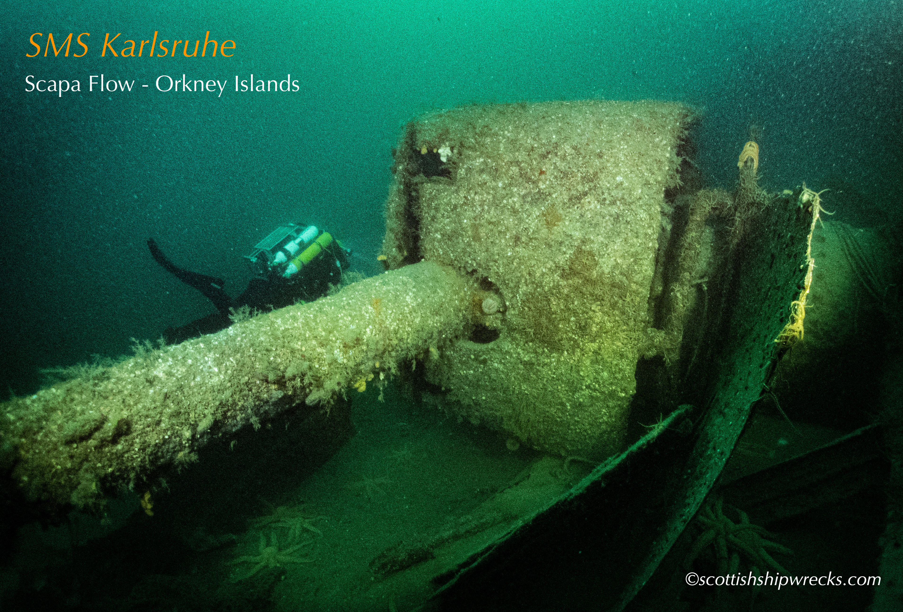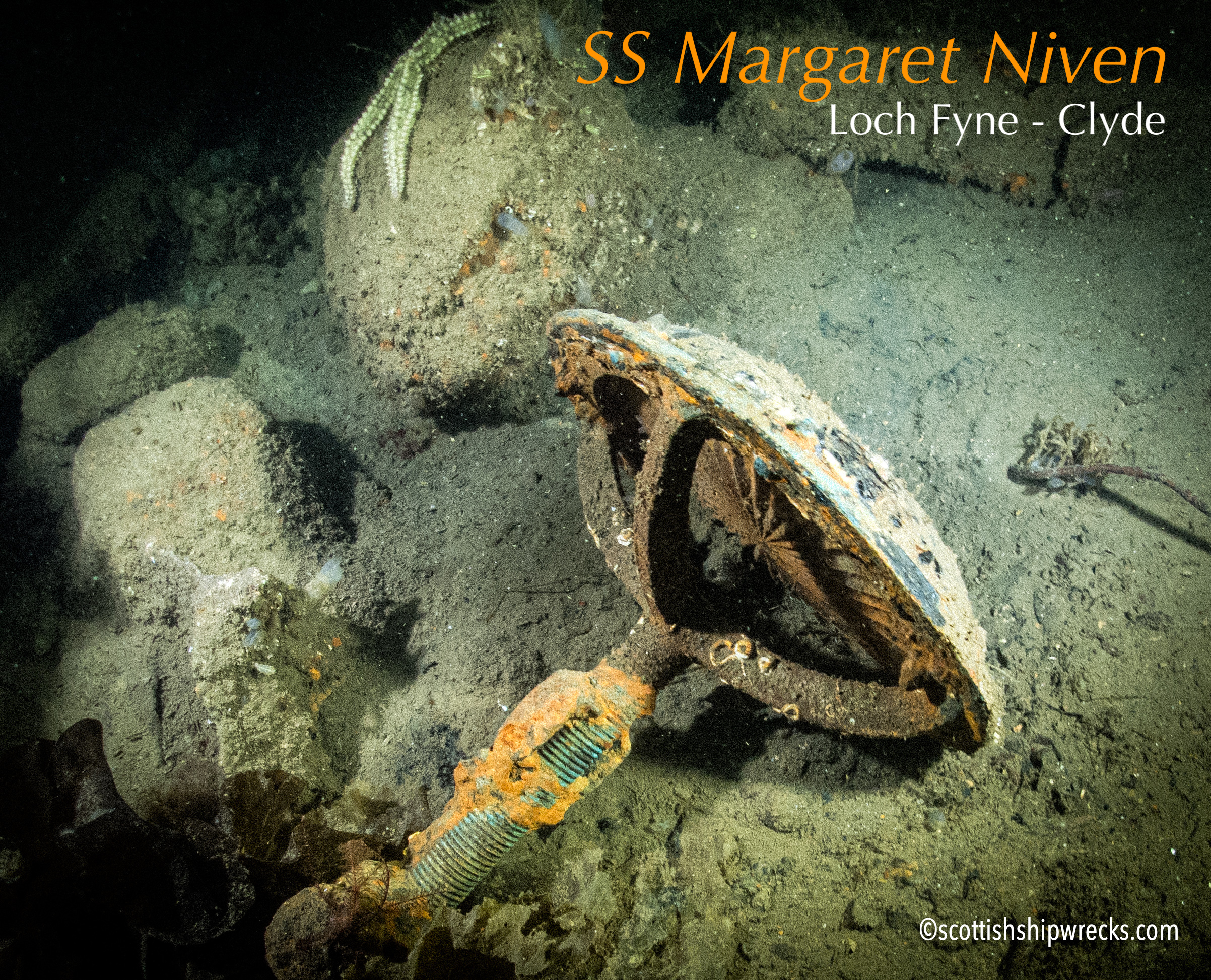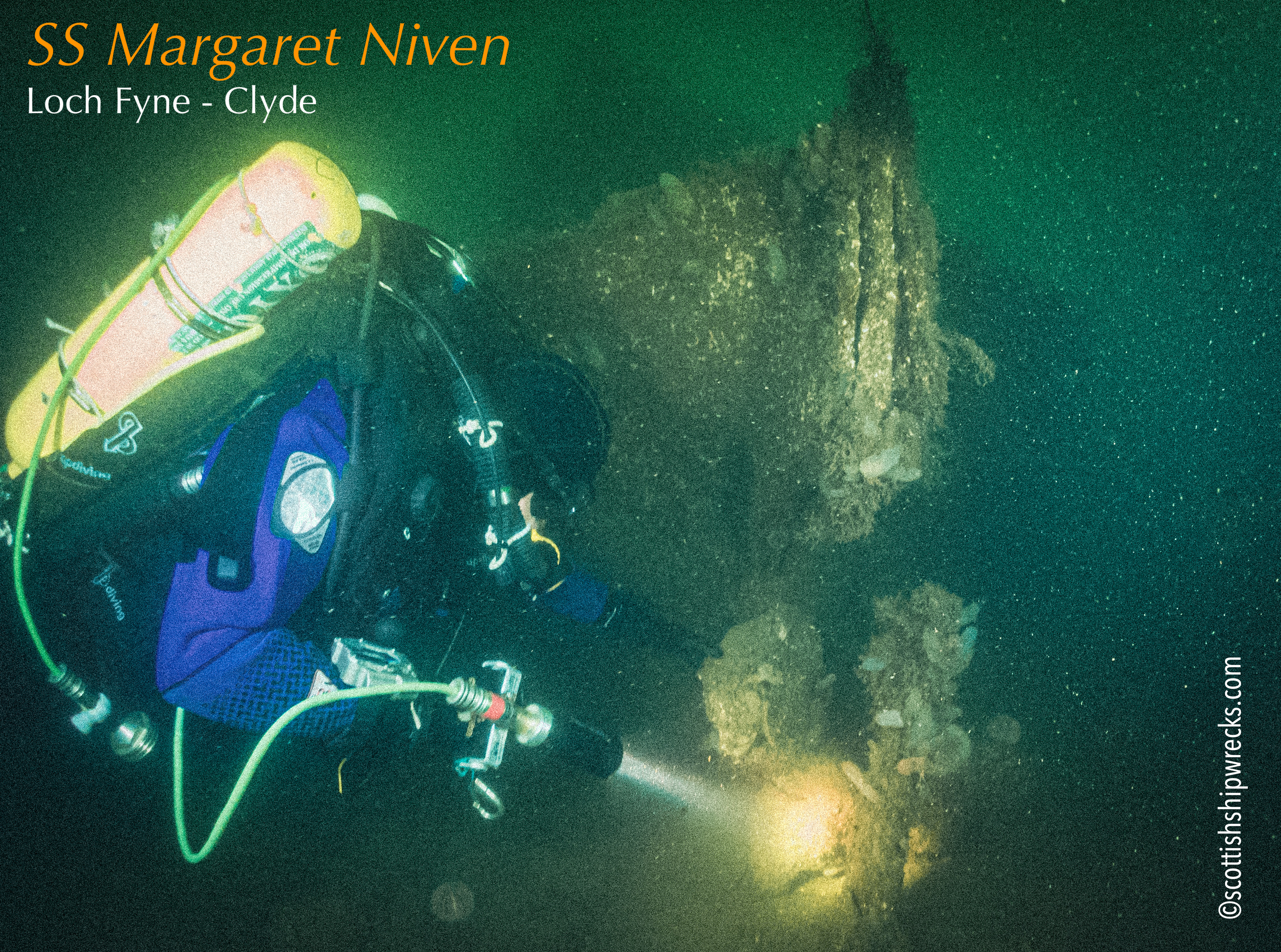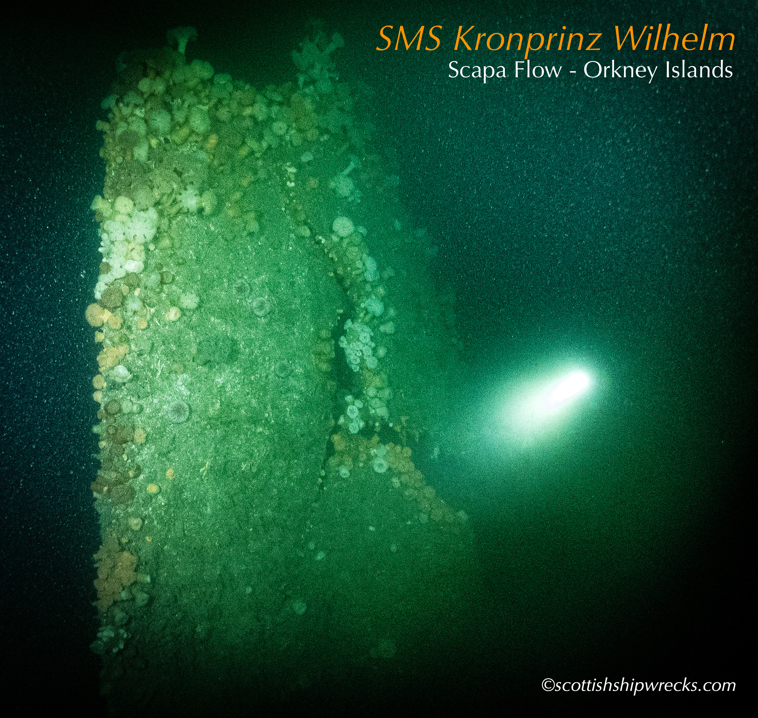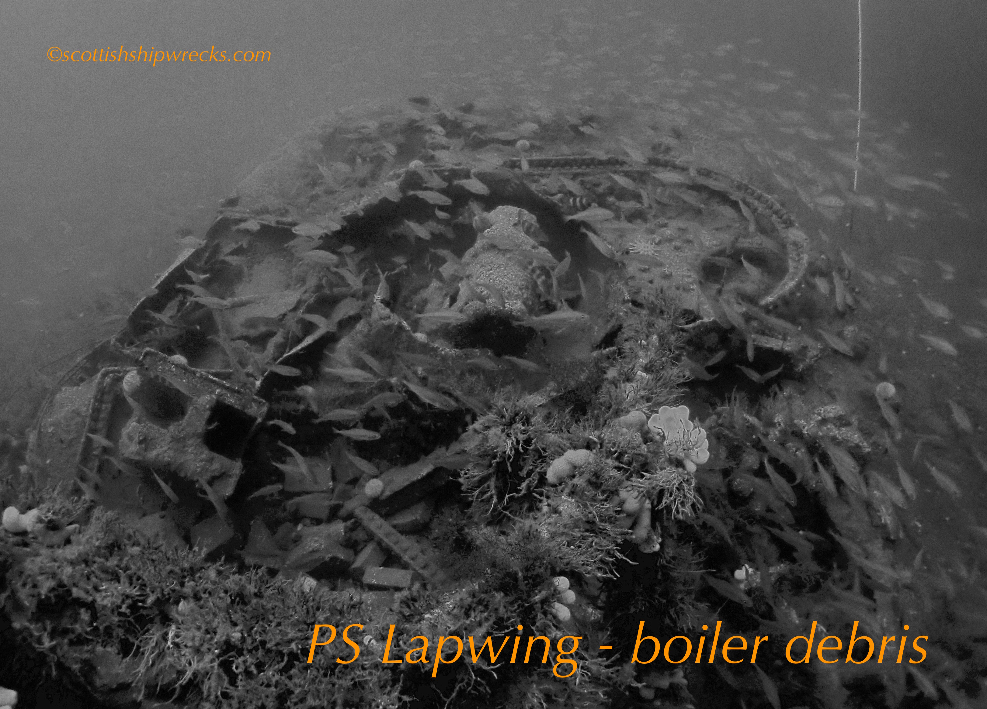 This section contain photographs of the wrecks as they lie on the seabed. These photographs have been taken over a period of many years up to and including very recently.  As such, the older photographs will not necessarily provide a view of the wreck as it exists today. However, the deterioration of the wrecks through time provides the viewer with an interesting insight into how a metal or wooden vessel will deteriorate over the years due to the action of the salty seawater and the Scottish weather. Underwater photography in Scottish waters is often a difficult exercise making the clarity of photographs taken extremely variable. The effects of rain water run off, plankton blooms, darkness and sometimes pollution provide visibility that can be 30 metres plus on offshore wrecks to as little as one metre in some cases in the Firth of Clyde or Firth of Forth. The skill of the photographer and the use of sophisticated photographic equipment and lighting combine to produce the best possible views of the wreckage but often pure luck contributes the best possible shots. The final colourful complication comes from the often beautiful colourful sealife that often encrusts the man made reefs that the wreck have become. The next section gives the viewer an idea of the typical types of sealife encountered on the wrecks.