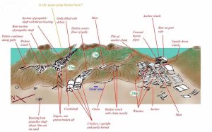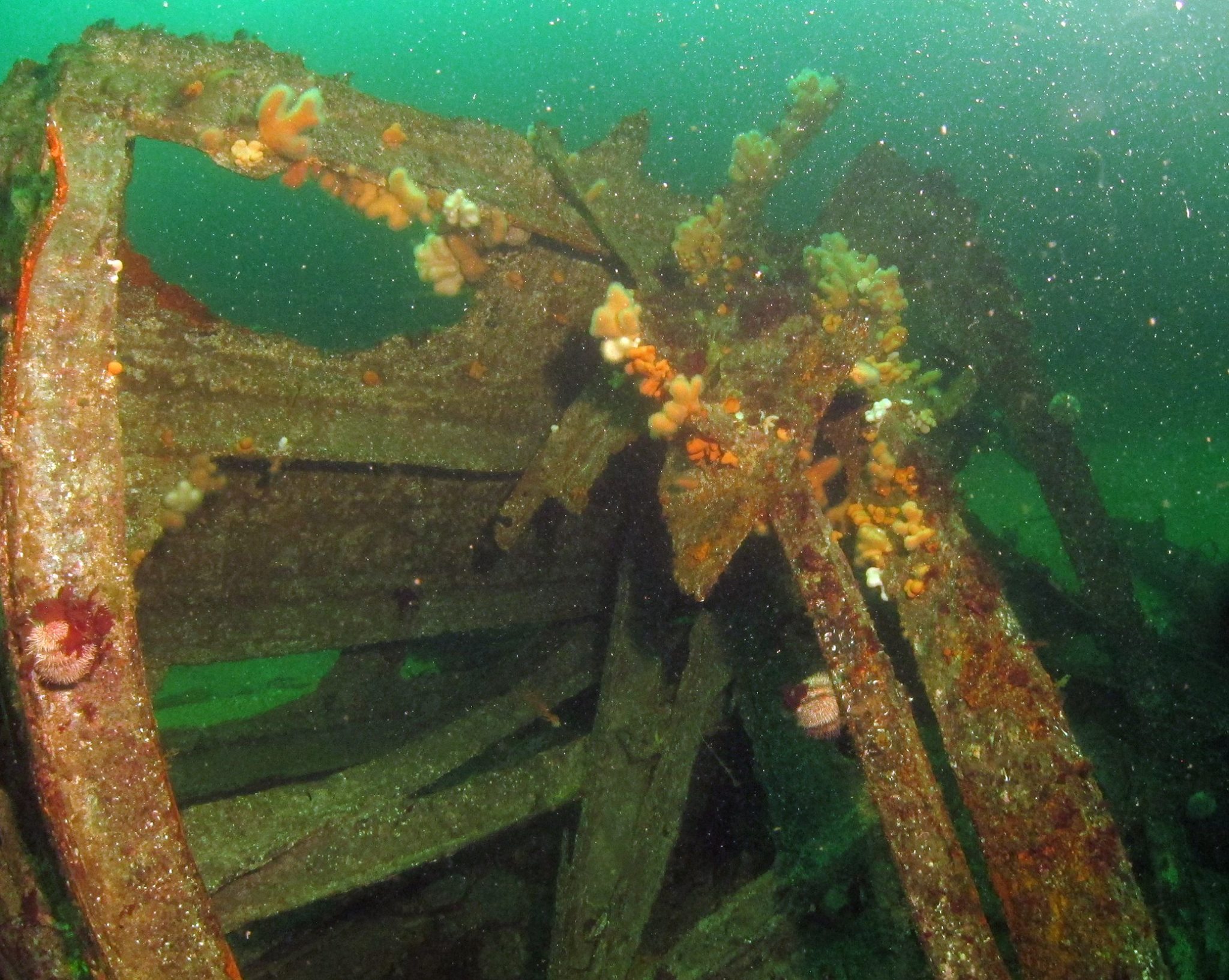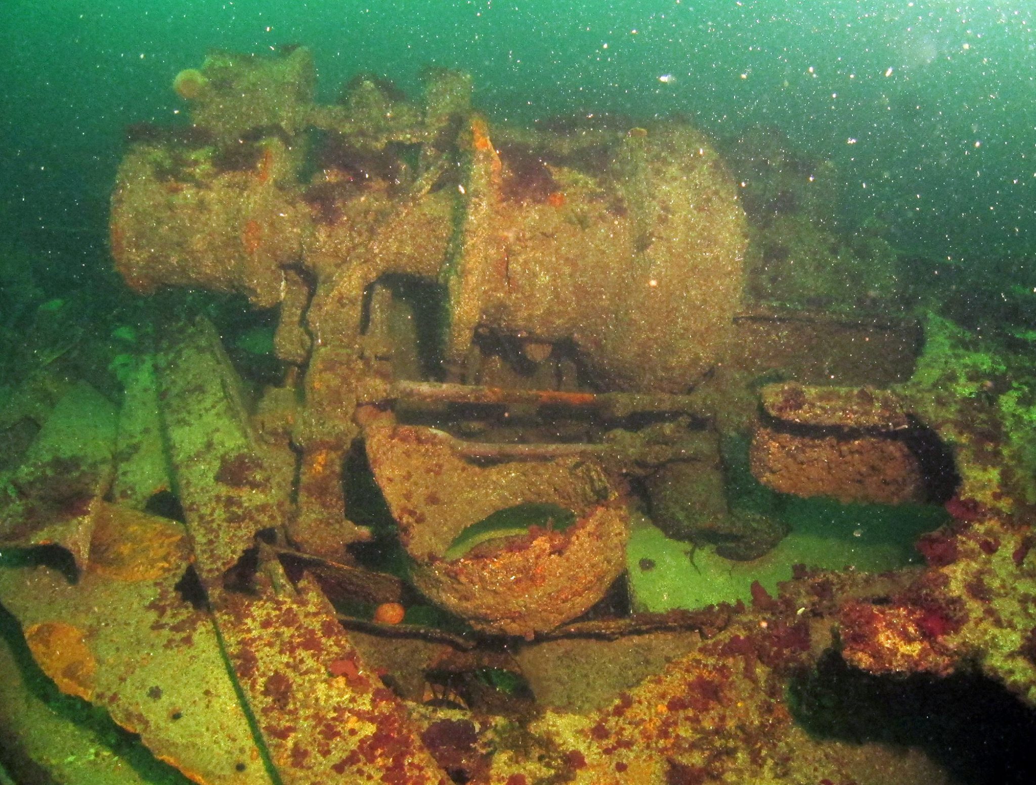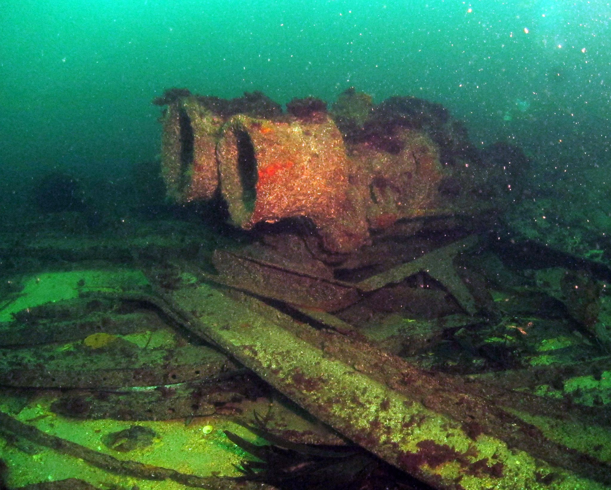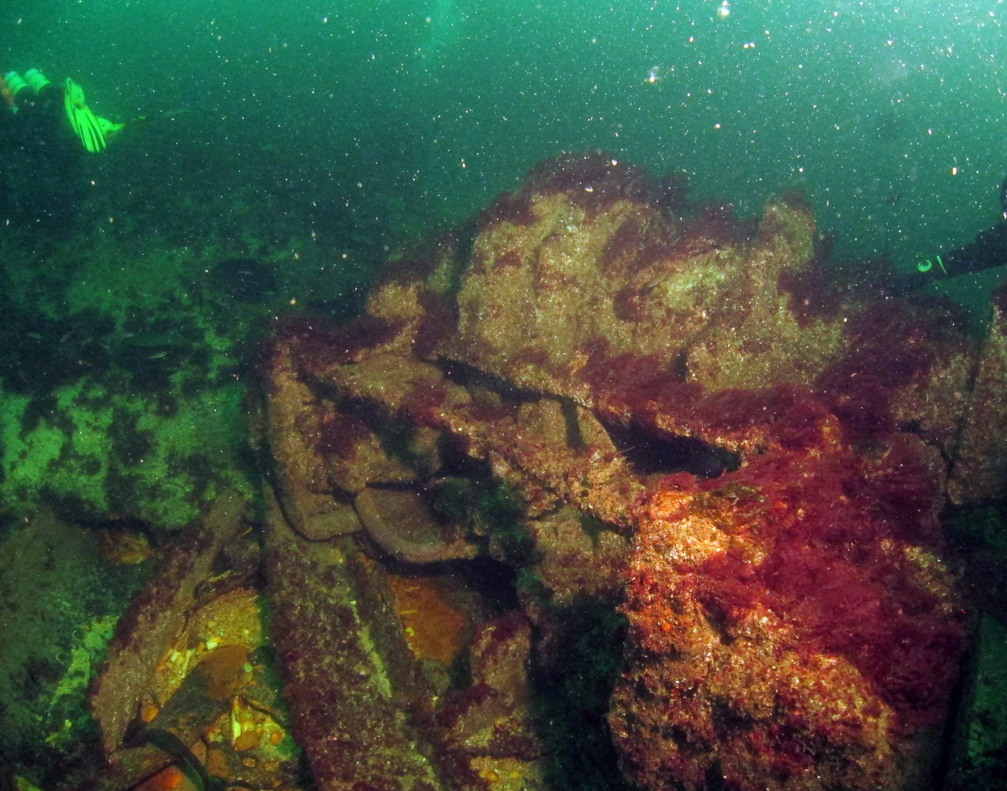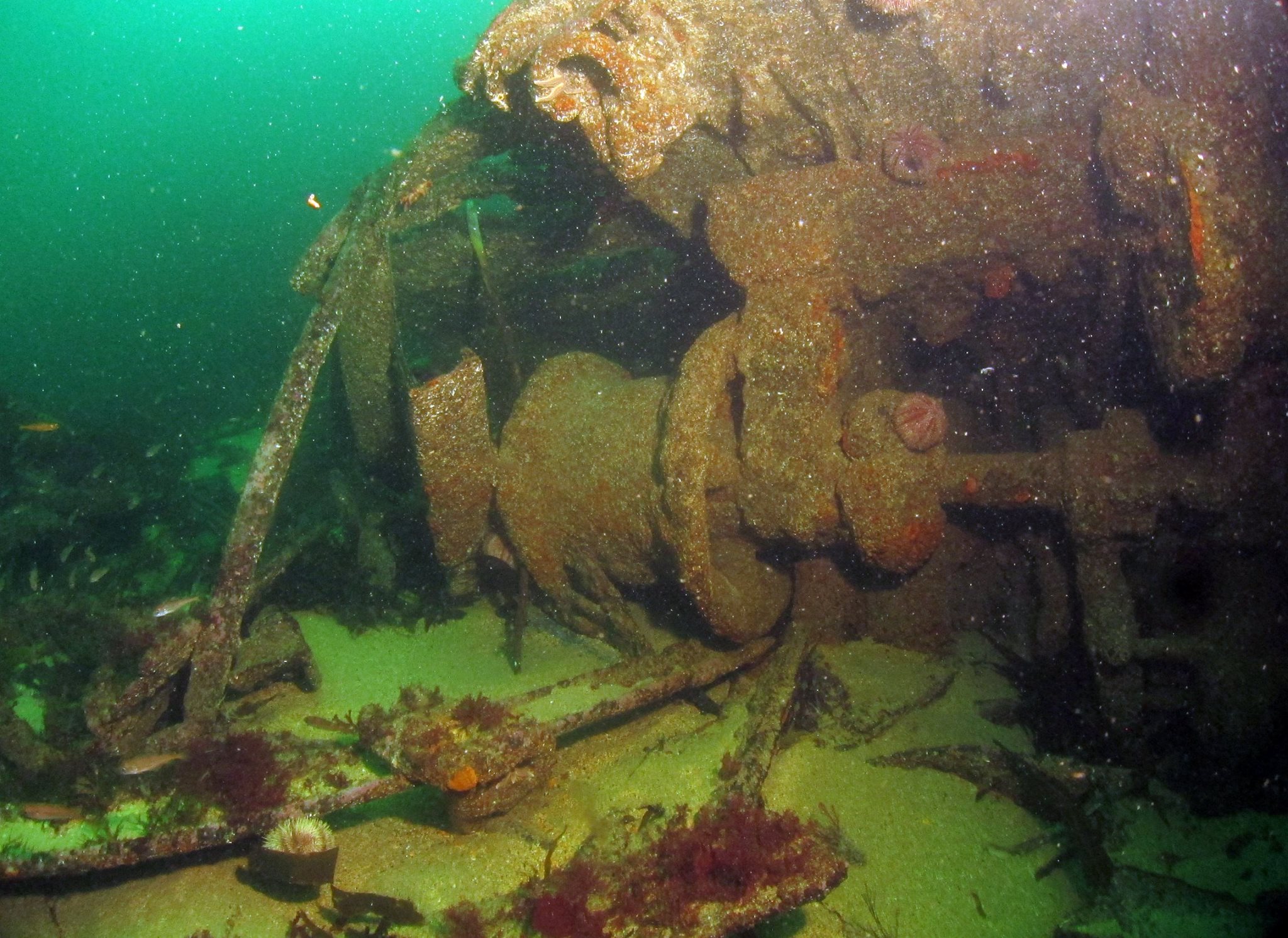 The wreckage of the Ashbury lies in position 58°32.776’N, 004°24.626’W (WGS84) which is on the west side of the rocky outcrop Dubh Sgeir Mohr, off Talmine. The wreckage is very broken in rocky gullies spread across the full extent of the reef in depths of 10 to 20 metres. Visibility is usually good and the bright sand reflects available light and adds to the visual appeal of the site.