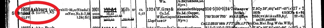 The steel steamship Nitedal was launched from the yard of William Gray & Co Ltd., Hartlepool (Yard No.961) on 20th June 1924. She measured 356.5′ x 50.0′ x 24.7′ and her tonnage was 3901 gross tons, 2363 net tons. She was powered by a triple expansion steam engine by Central Marine Engineering Works, West Hartlepool delivering 415 registered horse power. Built for Norwegian owners, Ostlandet D/S A/S of Christiana she was sold to Macbeth, Blackwood and Laurie of Glasgow one year later. She sailed for this company as Cairnhill for more than ten years before being sold to her final owners, the Alexander Shipping Company of London, in 1935 and re-named Ashbury. At the beginning of World War 2 she was requisitioned by the Admiralty for war service under the control of the Ministry of War Transport.