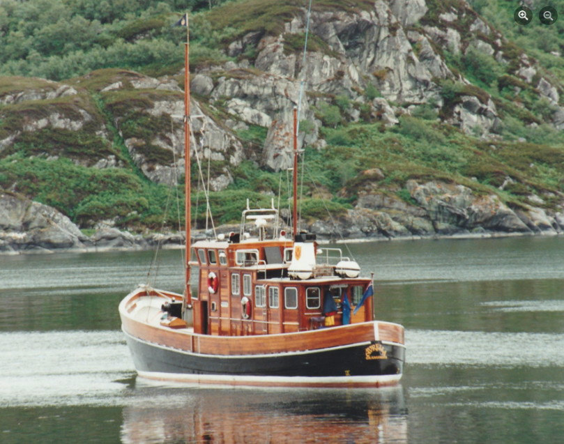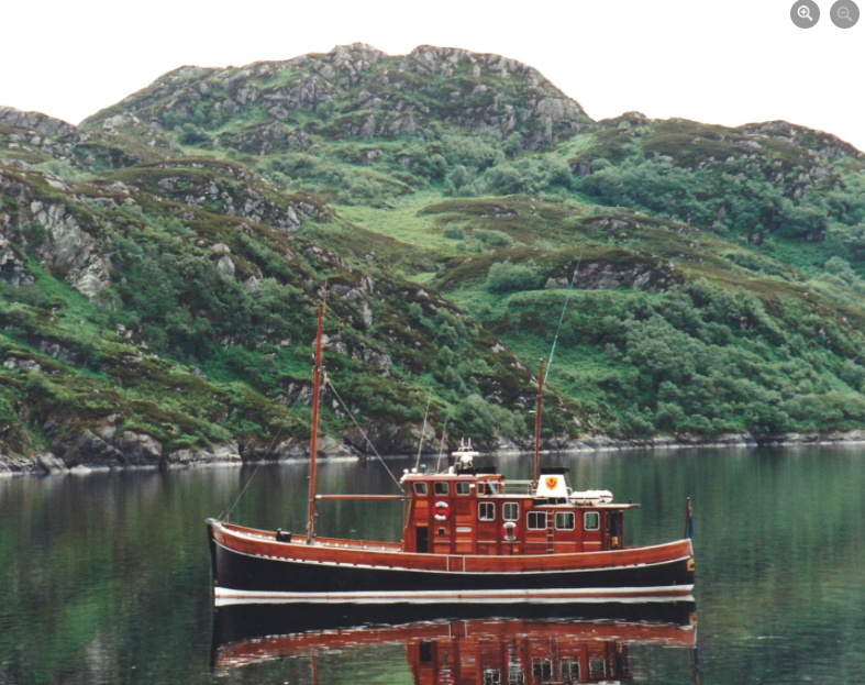 We have not been able to establish what happened following decommissioning other than she was converted for use as a private yacht, and the pictures below, courtesy of Jim Hynd, show her anchored in Loch Sunart in 1991.