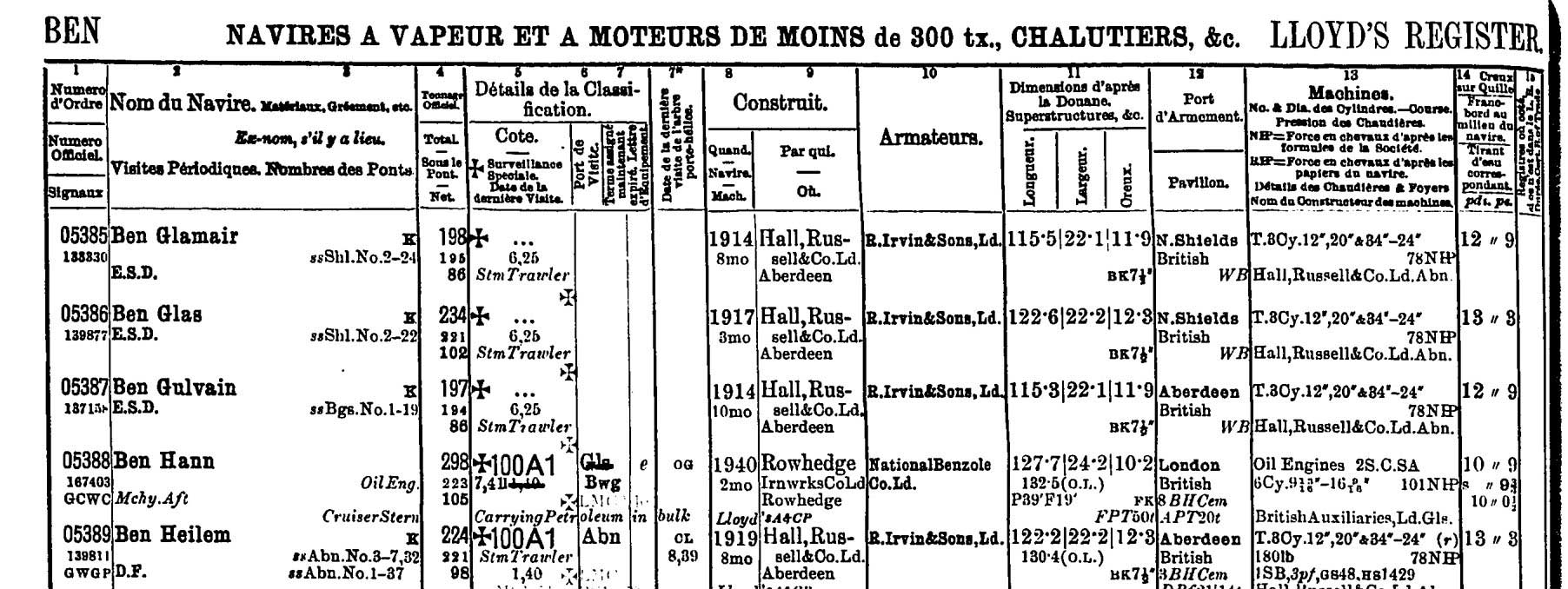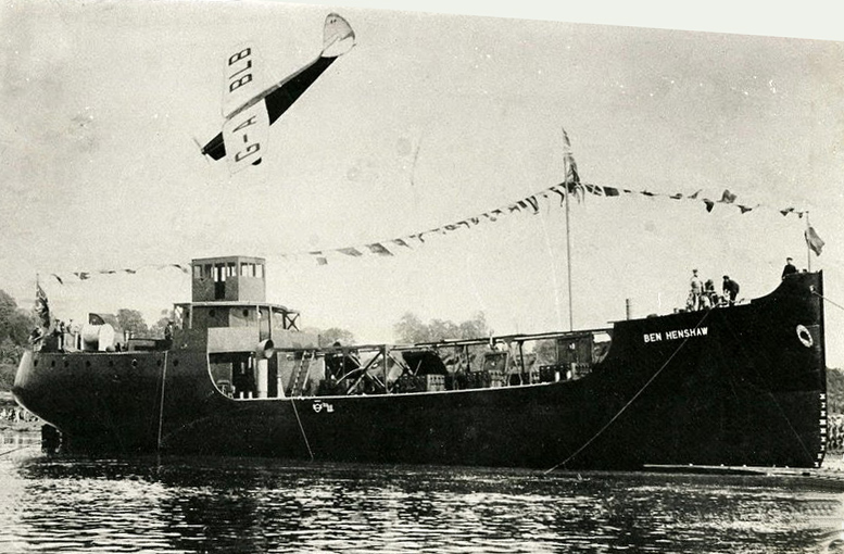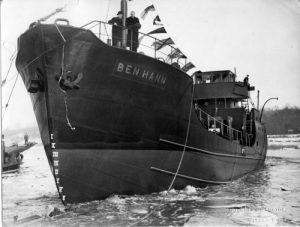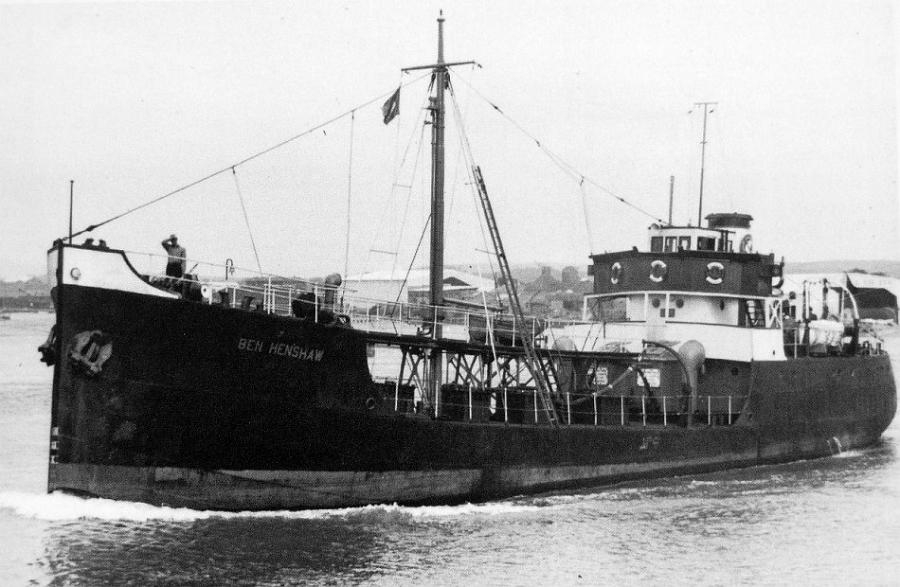 Built in 1939 and launched on 25th January 1940 by the Rowhedge Ironworks at Colchester (Yard No 585), the motor vessel Ben Hann was a small coastal tanker built for the National Benzole Company of London. She was one of six similar tankers built for the company by Rowhedge measuring 127.7′ x 24.2′ x 10.2′ and her tonnage was 298 gross tons, 105 net tons. She was powered by a 6 cylinder 2s CSA diesel engine by British Auxiliaries Ltd., Glasgow delivering 101 nominal horse power.