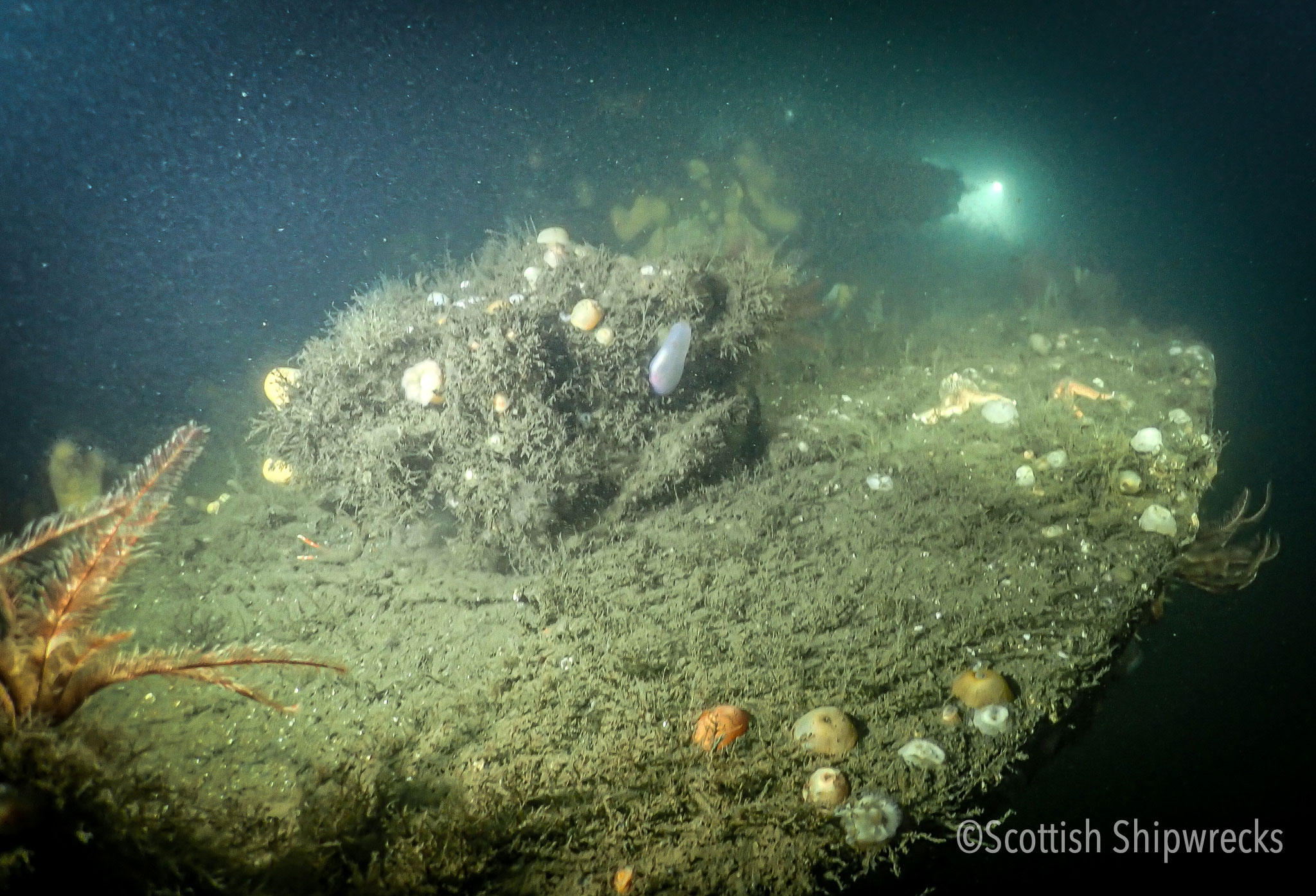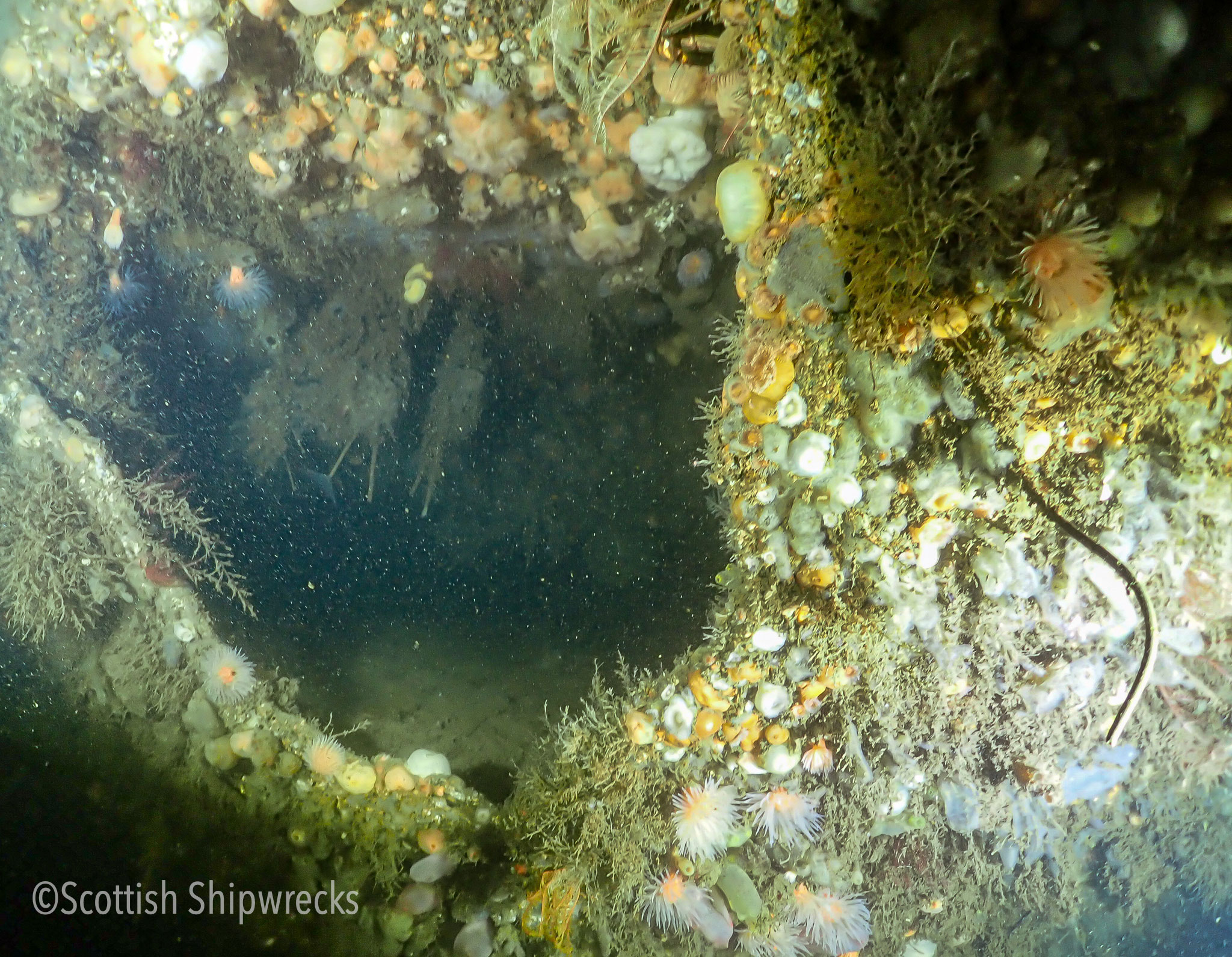 Diving the Europa presents no major problems other than the depth, however care should be taken due to its proximity to the shipping lane and adjacent ferry traffic from McInroy’s Point to Hunter’s Quay. Visibility on the wreck is variable, normally two or three metres and usually dark.