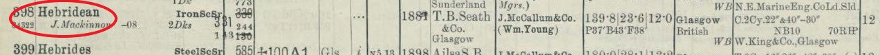 The iron steamship Hebridean was launched from the Broomloan yard of T B Seath and Co Ltd., Rutherglen (Yard No 208) on 30th April 1881. She measured 139.8′ x 23.2′ x 12.0′ and her tonnage was 331 gross tons, 143 net tons. She was powered by a compound steam engine by W King and Co Ltd., Glasgow delvering 70 registered horse power. Ordered by John McCallum and Co Ltd., Glasgow she was first registered on 16th June 1881 managed for this company by Andrew Ross of Glasgow. At times she was leased to various shipping companies in England and saw periods of service in the Bristol Channel and on routes to and from the Isle of Man. In 1917 she was purchased by Peter Cooper ( W Cooper and Son) of Kirkwall who re-named her Express and she entered service operating between the Northern Isles and various ports on the Scottish mainland.
