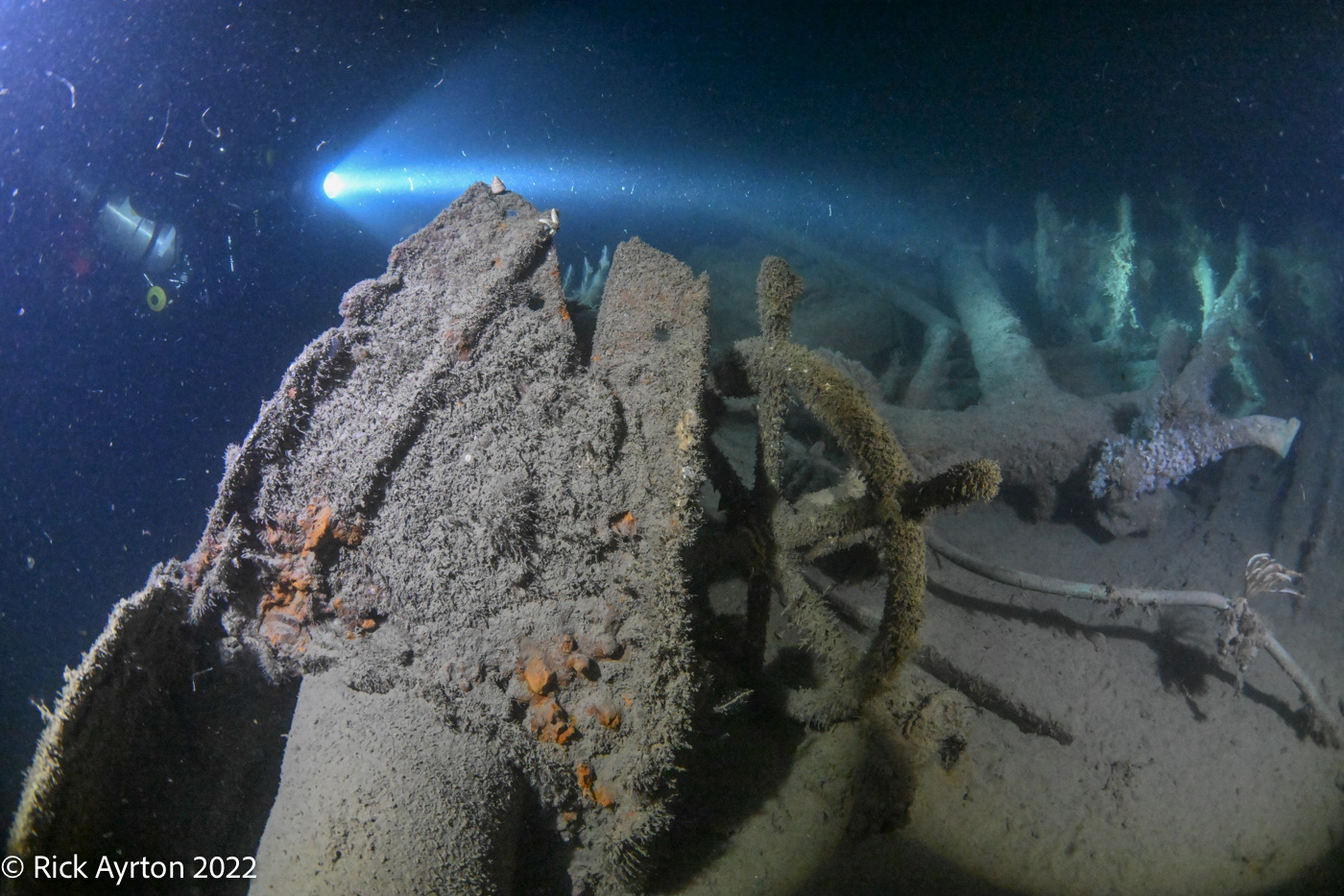 We would like to thank Rick Ayrton for allowing us to reproduce his underwater photographs of the wreck.