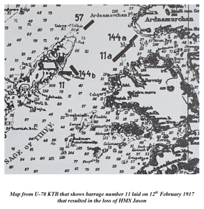 Meanwhile HMS Jason had been assigned to the area to respond to the increasing efforts of the German mine laying U-boats clearing the critically important routes in and out of Oban for the incoming and outgoing convoys. It was on this duty, on the 3rd April, 1917 she was off the east coast of Coll in April of 1917 accompanied by HMS Circe.