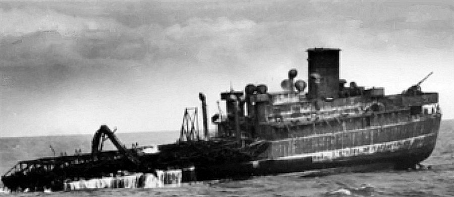 The stern section was sunk by escort vessels with depth charges and gunfire before they moved on with the convoy. A rescue tug appeared on the scene in the early hours of the following morning and tried to extinguish the flames on the forward section but this was futile and just after noon on the 31st this section disappeared beneath the waves.