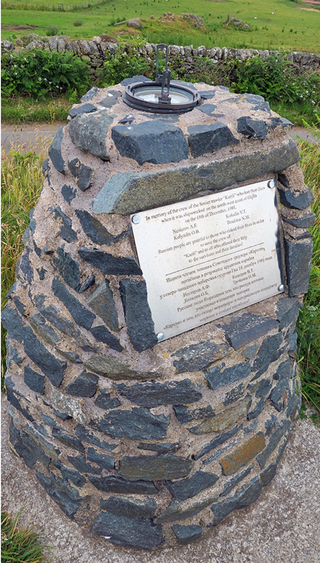 The Kartli, with fifty one crew aboard under command of Kaptain Vladimir Gayduk, had finished her fishing trip in the fishing grounds west of Shetland and was homeward bound to Bulgaria. Nine miles off the west coast of Islay she was caught in a violent storm and disabled when a gigantic, freak wave smashed her bridge and flooded her engine room. Local residents on Islay later described the conditions on the night of the accident as the worst they had seen. The terrible weather and the strong tides that sweep the west coast of Islay no doubt combined to throw up the massive thirty feet wave which crashed onto the bridge and tore the aluminium structure as if it was paper – three of the crew, including one of the three females aboard, were killed instantly as the structure caved in beneath the huge wave. A fourth died in hospital in Northern Ireland later.