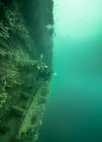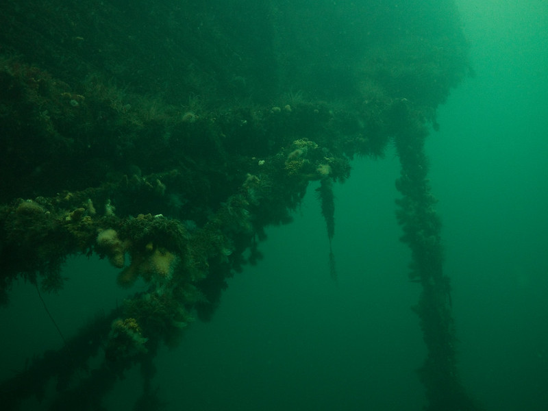 The wreck of the Port Napier, which lies in position 57°15.951’N, 005°41.251’W is now one of the most popular destinations in Scotland for visiting sub aqua divers. The huge ship, lying on its starboard side in 20 metres, is intact except for the original explosion damage and the removed port side plates. It is easy to explore and teaming with fish and wildlife at most times. The seabed along the length of the ship is covered in flottsom that has fallen from the ship. The huge masts lean gently on the muddy seabed, the only inhabitants of the now empty crow’s nest are the pollock and wrasse that shoal around the wreck. The ship’s guns are still clearly visible and make an interesting stop in any exploration.