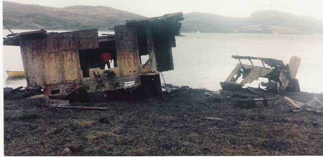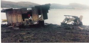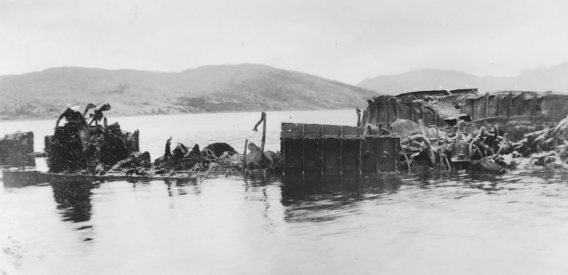 The Port Napier was finally abandoned to its fate in Loch Na Bieste, a sheltered bay one mile east of Kyleakin on the Skye shore. The crowds in Kyle of Lochalsh could still see the glow of the flames lighting up the hillside on the shores of Skye as they waited tensely for the inevitable demise of the ship. Eventually the dark night lit up with a huge flash followed shortly after by a deep rumble as the ship was torn apart by a massive explosion. Large pieces of wreckage were blasted high into the air, some landing back in the water with a huge splash while others rained down on the shores and hillsides of Skye.