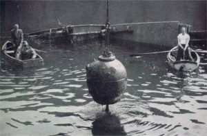 Wartime reporting restrictions kept the loss secret until peacetime and she lay undisturbed, with most of her deadly cargo still in place, until 1950 when the Navy decided that the wreck should be made safe. It took some time for the necessary arrangements to be made but in 1955 work began. The salvage team, from HMS Barglow, developed an ingenious plan which first involved the removal of much of the plating on the ship’s port side. This provided easy access to the holds beneath. A lift system was then rigged and then, with the help of teams of divers, the removal process began. It took well into 1956 to complete the work but then the ship was again abandoned to the sea.