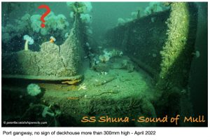 So the Shuna has become a bit shoogly. It’s not surprising really as it celebrates its 109th anniversary below the the waves on 9th May. Take care in future, but enjoy your dives on this amazing wreck.