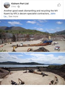 - The motor vessel Kaami ran aground earlier this year and was successfully refloated on 4 May 2020. Attached are a couple of extracts from Kishorn Ports website that show the vessels demolition in their massive dry dock facility, not much left, wonder if they have been taking a time lapse.