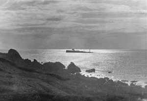 On 5th February, 1920 she left the Gareloch under tow by the tugs Wrestler and Campaigner on her final voyage to the scrapyard in Liverpool. By dawn the following morning a strong westerly gale had blown up and the tugs found it impossible to control the rolling hulk which eventually stranded one mile south of Girvan. Initially the tugs managed to refloat the Varyag on the rising tide but the prevailing weather conditions proved too much for them and their charge and she stranded again that evening at the north end of Lendalfoot Bay.