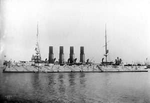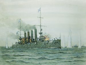 In 1907, Vsevolod Rudnev was decorated with a Japanese order for that battle. Although he accepted the order, he never wore it in public. The Varyag was later salvaged by the Japanese and repaired. She served with the Imperial Japanese Navy as light cruiser Soya. Placed into Japanese service as a 3rd class cruiser, the Soya was used primarily for training duties. From 14th March 1909 to 7th August 1909, she made a long distance navigational and officer cadet training cruise to Hawaii and North America. She repeated this training cruise every year until 1913. During World War 1 Russia and Japan became allies and the Soya (along with several other vessels) was transferred back to Russia at Vladivostok on 5th April 1916, and it’s original name of Varyag restored. After spending some time in the White Sea, the Varyag was sent to Liverpool for repair in 1917. She did not return to Russia, spending the remainder of World War 1 as a depot ship somewhere in British waters.
