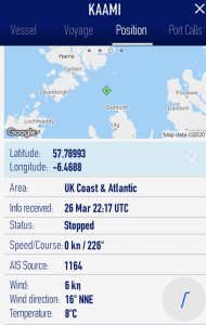 Some of you maybe aware that the Norwegian motor vessel Kaami ran aground on a reef known locally as Eugenie Rock six nautical miles north west off Duntulm on Skye on Monday 23rd March, shortly before 1:50am.