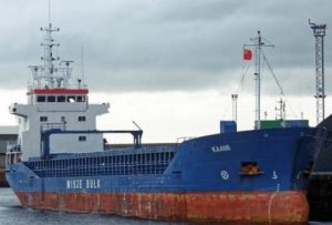 Vessels have been standing by the Kaami since she went ashore a week ago and today there are a number of tugs and a dive support vessel in the vicinity so work to survey and refloat the vessel is in hand. The 2715gt. steel bulk cargo ship was launched in 1994 from the yard of J G Bijlholt, Foxhol, Netherlands, she is around 89m long and 13.2m wide.